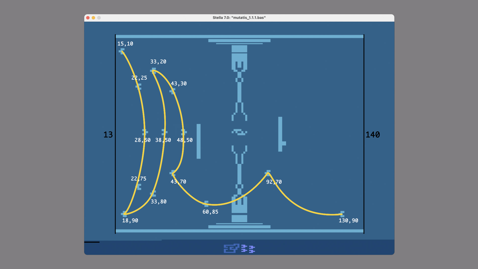 Hey, this is William, with an update on my game Mutatis for the Atari 2600. I made some progress on this game, during this summer. This is the game I entered in the Atari I, Rebel Game Jam a few months ago.